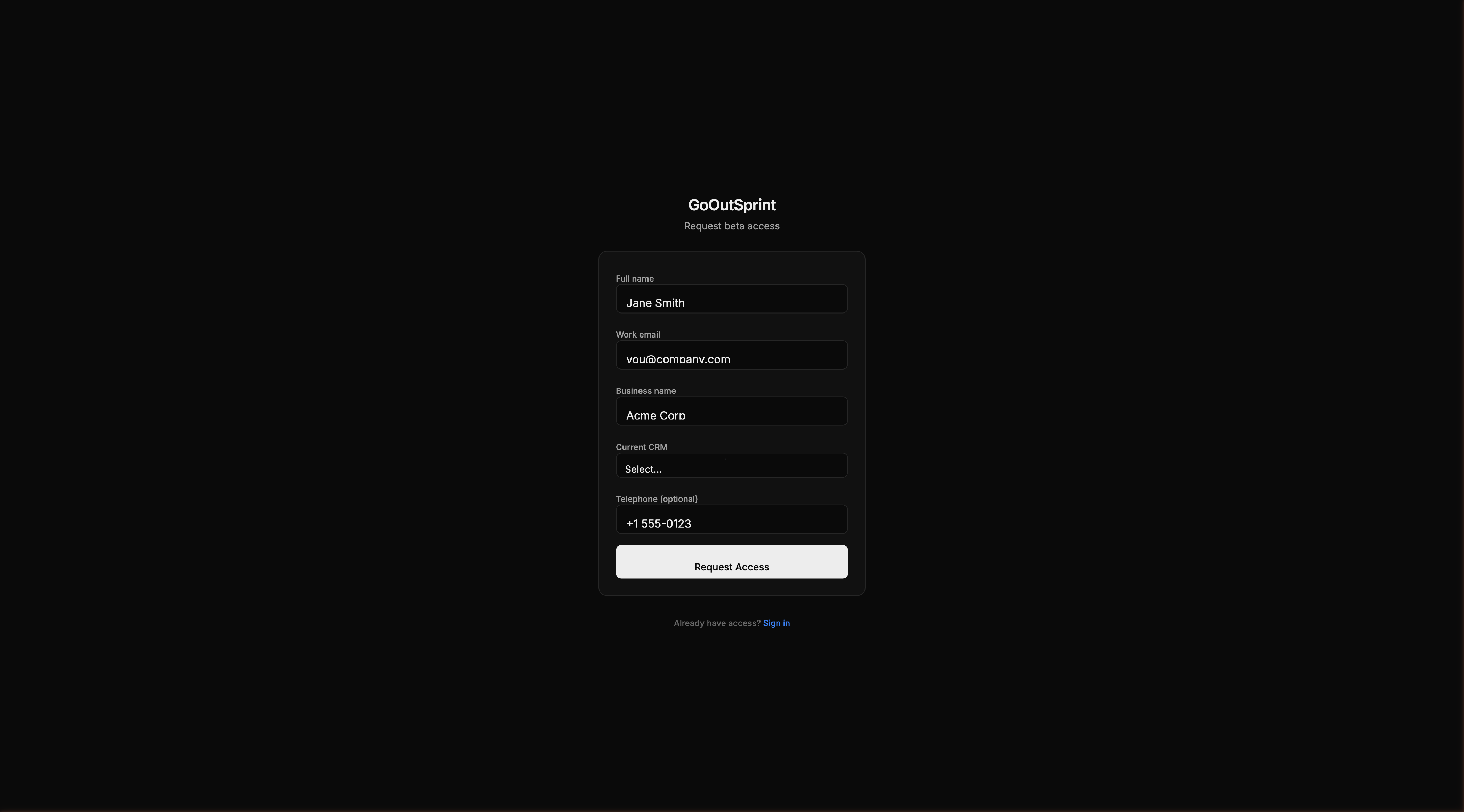 Outsprint is currently in private beta. You can request early access through the signup page.